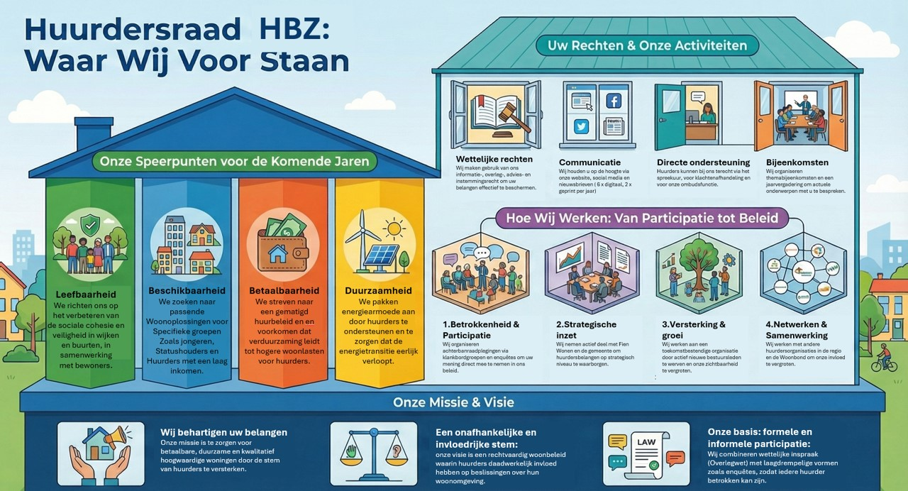 Onze vereniging is een (sociale) huurdersorganisatie en behartigt de collectieve belangen van deze huurders.