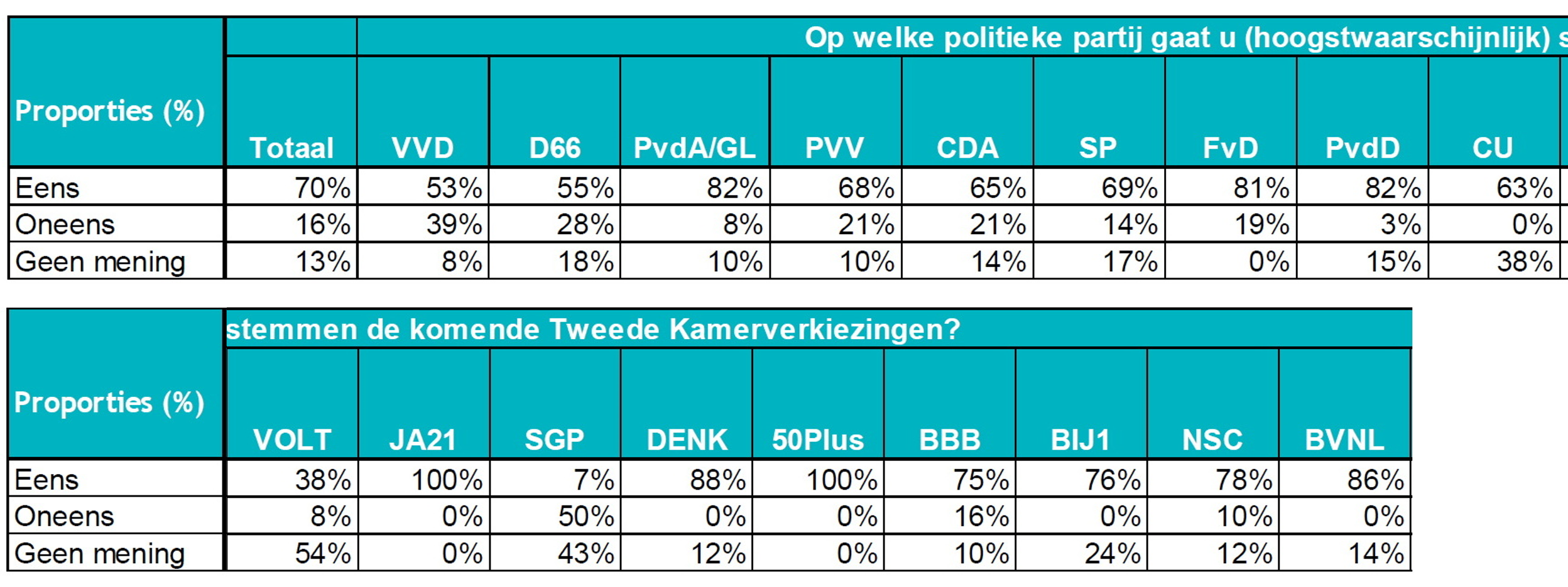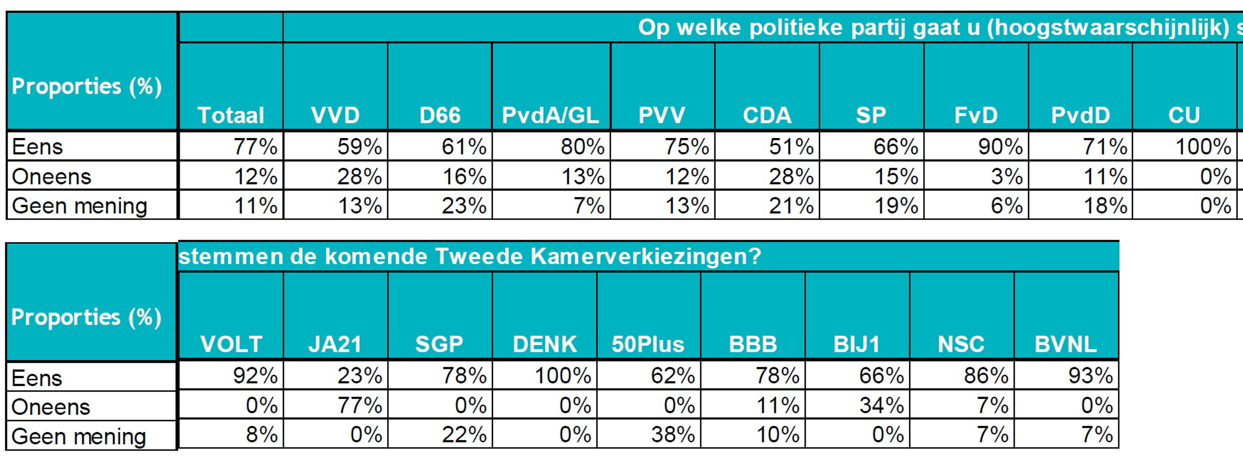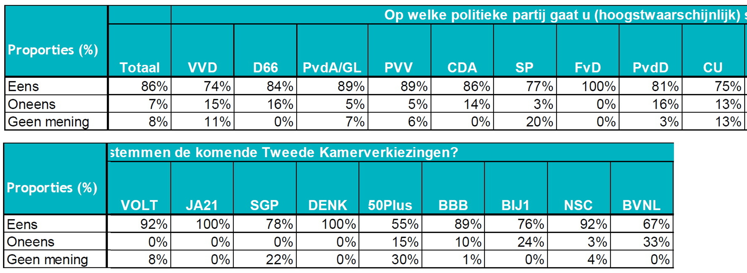 Voor de regulering van de vrije sector is echter zeer grote steun onder kiezers, ook de kiezers die VVD en BBB overwegen zijn voor. In totaal is 77% voor en slechts 12% tegen. Onder huurders in de vrije sector is de steun maar liefst 92%.