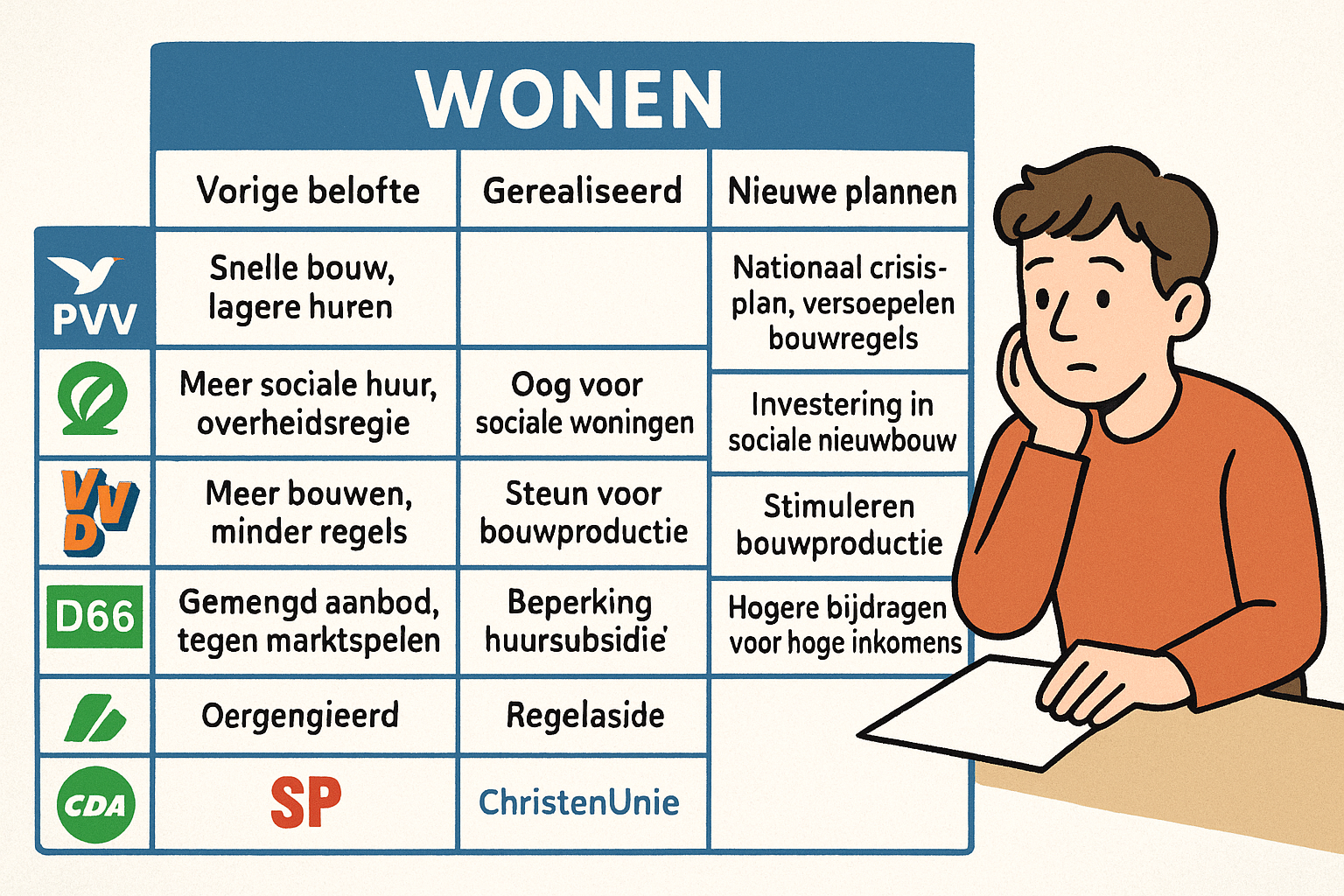 De laatste verkiezingen voor de Tweede Kamer waren op 22 november 2023. Veel politieke partijen hadden beloften over “wonen” in hun verkiezingsprogramma staan. In ons vorige nieuwsitem publiceerden we een overzicht.