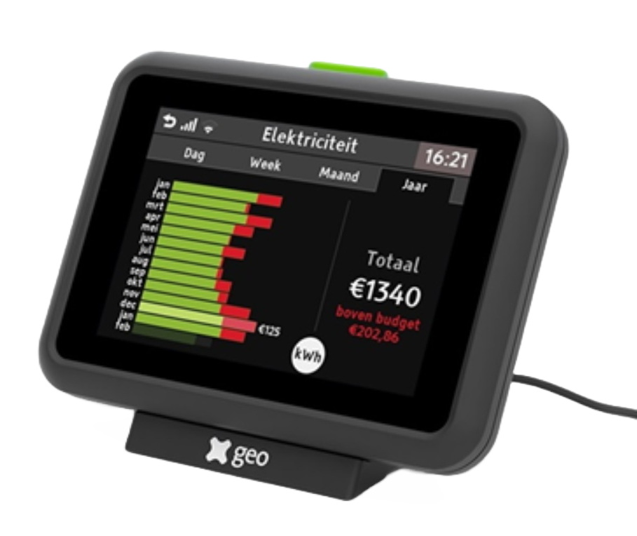 Het energiedisplay is een eenvoudig schermpje waarop je realtime dekosten van gas en stroom kunt aflezen. De energiedisplay staat op een zichtbareplek, het liefst in de woonkamer of keuken.